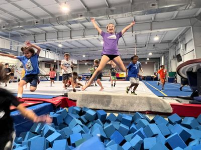Campers will train and compete in Ninja Warrior and Parkour, including friendly competitions, while also enjoying Nerf games, Tumbling, foam pit time, arts & crafts, structured team games, and hands-on daily STEM projects. Every week balances skill-building challenges with fun movement in a safe, supportive environment.